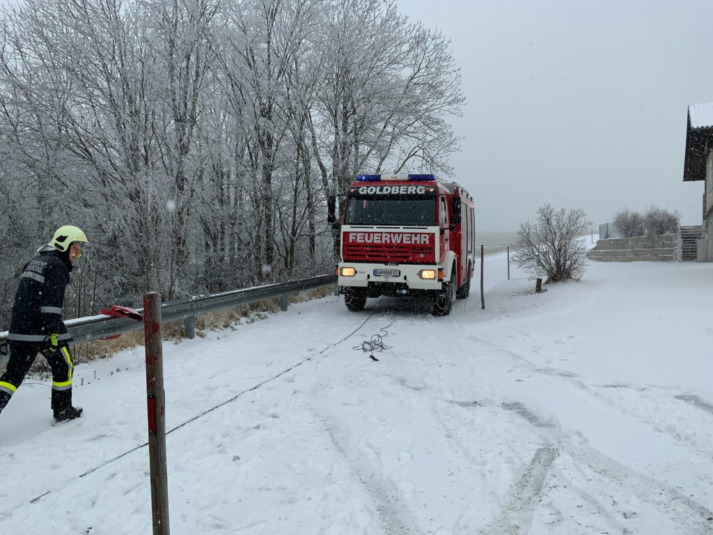 Die FF Goldberg sicherte den LKW mit der Seilwinde gegen das Abrutschen und unterstützten den Fahrer beim anschließenden Ketten anlegen. Der LKW konnte nach kurzer Zeit seine Fahrt unbeschadet fortsetzen.